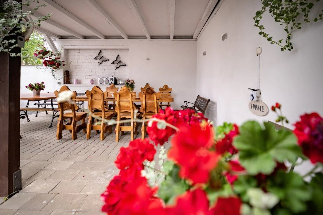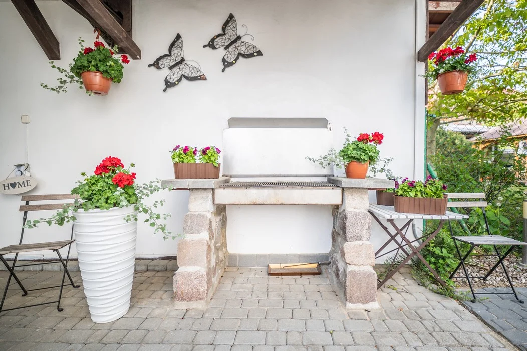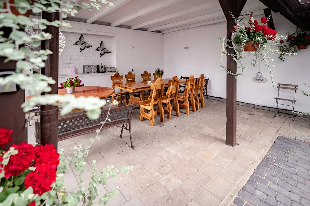 • Meble ogrodowe i stół na świeżym powietrzu.